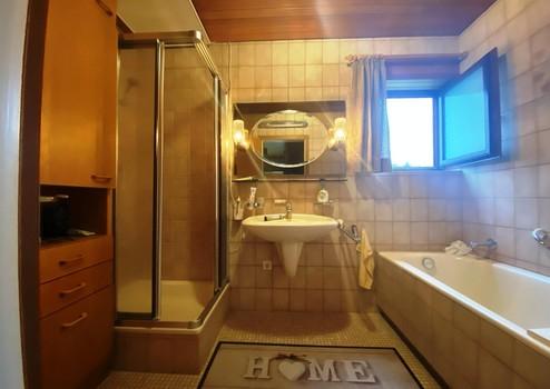 Warmwasser wird mit einem Holz-Badeofen im Keller erzeugt, damit wird im EG das Bad und die Wohn-Küche, im Keller im Waschraum ein Waschbecken und die beiden Waschmaschinenanschlüsse, sowie eine Behelfsküche versorgt.