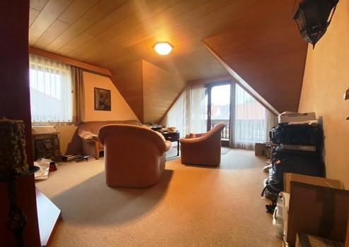 Im DG hat das Schlafzimmer auch einen 21 mm dicken Echtholzparkett-Fußboden, der Flur und ein Zimmer einen Echtholzlaminat-Fußboden und 2 Zimmer einen Teppichboden.