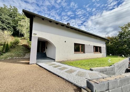 Dieses Einfamilienhaus aus dem Jahr 1988 bietet eine Wohnfläche von ca. 150 m² und wurde im Jahr 2021 umfassend modernisiert. Durch die Renovierungen präsentiert sich die Immobilie in einem gepflegten und zeitgemäßen Zustand und eignet sich ideal für Familien, die ein sofort bezugsfertiges Zuhause suchen. Das Haus verfügt über ein großzügiges Wohnzimmer mit direktem Zugang zur Terrasse, ein Schlafzimmer, zwei Kinderzimmer, die auch als Gästezimmer oder Homeoffice genutzt werden können, sowie zwei moderne Badezimmer. Der Grundriss ist gut geschnitten und sorgt für helle, freundliche Räume. Besondere Ausstattungsmerkmale sind die neue Pelletheizung aus dem Jahr 2021, die ebenfalls 2021 erneuerte Fassadendämmung sowie die im selben Jahr durchgeführte Innenrenovierung. Die Kombination aus solider Bausubstanz und moderner Ausstattung sorgt für ein energieeffizientes und komfortables Wohnerlebnis.