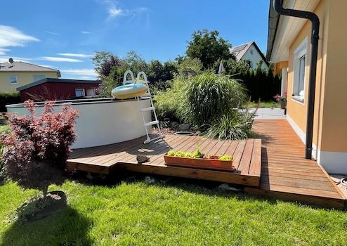 Der Außenbereich ist ein echtes Highlight: Auf dem 742 m² großen, gepflegten Grundstück lädt ein wunderschöner Garten mit Terrasse und Pool zum Entspannen und Genießen ein. Eine Garage und ein Carport bieten zusätzliche Stell- und Lagerfläche.