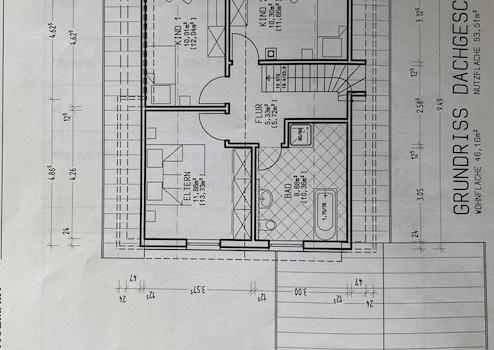 Im Dachgeschoss erwarten Sie drei vielseitig nutzbare Zimmer, ideal als Kinder-, Gäste- oder Arbeitszimmer. Das großzügige Familienbad ist mit Badewanne, separater Dusche und viel Bewegungsfreiheit ausgestattet.