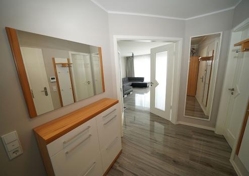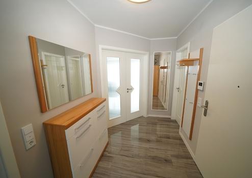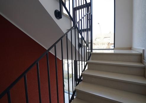 Die Wohnung erreichen Sie entweder über das lichtdurchflutete Treppenhaus oder ganz bequem über den Aufzug, der sie auch in die Tiefgarage und somit zu Ihrem Fahrzeug bringt.