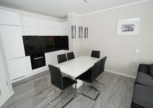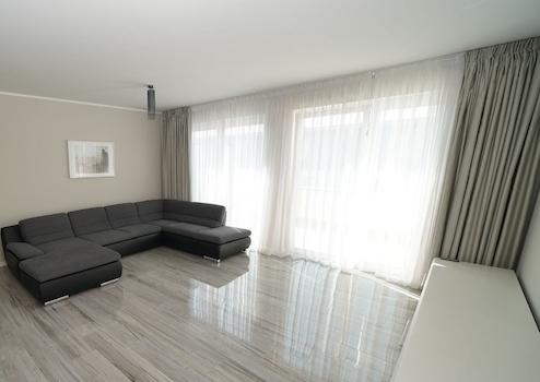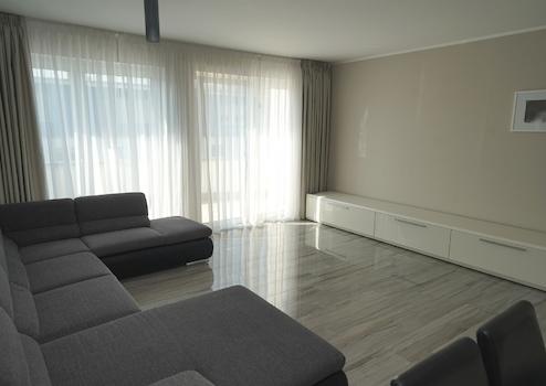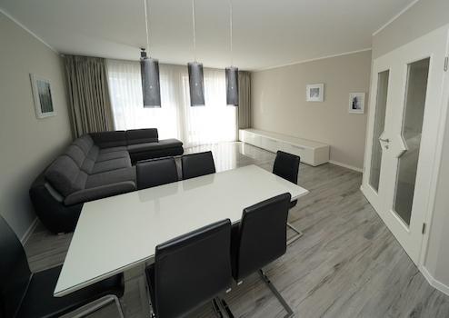 Im geräumigen Wohnbereich können Sie gemütliche Kinoabende verbringen oder Ihre Gäste empfangen. Im Wohnbereich befindet sich auch der Zugang zum großen Balkon, dem absoluten Highlight der Wohnung.