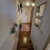 Sie fahren bequem mit dem Aufzug bis zur Wohnung. Im vorderen Bereich ist das Badezimmer, das gut geschnittene Schlafzimmer, sowie das Gäste-WC welches groß genug ist für Waschmaschine und Trockner.