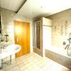 Schlafzimmer, Badezimmer mit Dusche, Badewanne und zwei Waschbecken, Gäste-WC