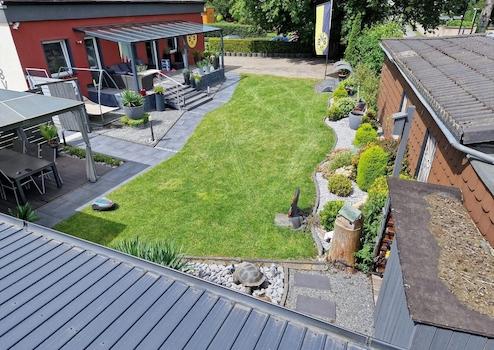 Dieses umfangreiche sanierte Mehrfamilienhaus mit einer Gesamtfläche von 420 m² umfasst insgesamt vier Wohneinheiten. Die Eigentümerwohnung bietet mit 164 m², vier Zimmern, einem separaten Eingang, einer großzügigen, überdachten Terrasse sowie einem schönen großen Garten einen Haus-im-Haus-Charakter. Damit verbindet sich der finanzielle Vorteil eines Mehrfamilienhauses als konstante Einnahmequelle mit den Vorzügen des entspannten Wohnens in den eigenen vier Wänden. Der eigene Garten mit dem zusätzlich überdachten Grillplatz lädt zum Erholen und Feiern ein.
