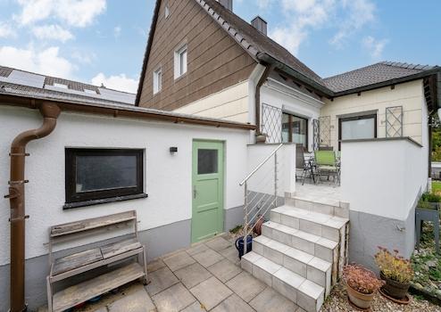 - Terrasse mit Zugang zum Garten