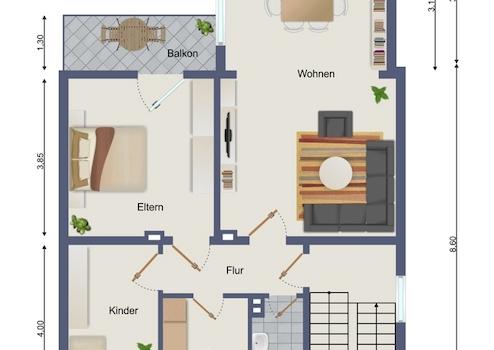 Die Wohnung in der 1. Etage wurde vom Sohn des Eigentümers 2023 renoviert und eine Zeit lang selbst genutzt. Hier wurden auch die Leitungen neu gemacht.