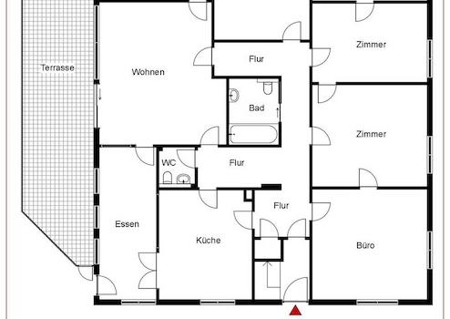 Esszimmer, Küche, Wohnzimmer, Terrasse.