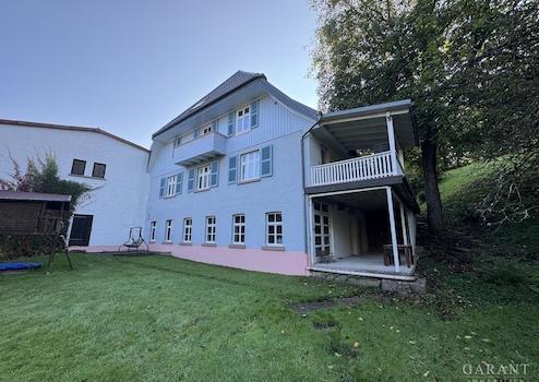 Dieses charmante, ehemalige Sägewerk erstreckt sich über rund ca. 10.000 qm Grundstückfläche und verbindet Wohnkomfort mit rustikalem Flair. Im vorderen Teil des Anwesens erstreckt sich das großzügige Wohnhaus mit ca. 380 qm Wohnfläche auf zwei Ebenen, dieses ist komplett unterkellert und verfügt über einen Hobbyraum sowie eine Terrasse im Keller. Im ersten Obergeschoss gelangen Sie durch das Wohnzimmer auf die großzügige Terrasse mit Blick in den weitläufigen Garten ein. Zusätzlich haben Sie die Möglichkeit die direkt angrenzende Scheune mit zahlreichen Lagermöglichkeiten individuell zu nutzen. Sollten Sie größere Fahrzeuge haben sind Sie hier genau richtig, denn Platz hat er mehr als genug.