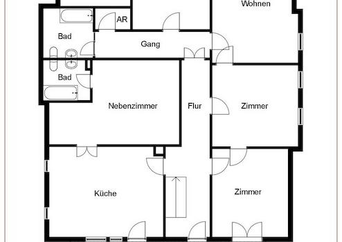 2.OG: Flur, 6 Zimmer, 2 Badezimmer, Küche