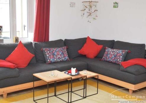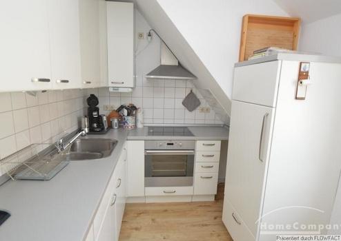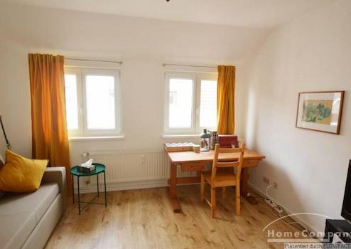 Diese Wohnung liegt in der 3. Etage eines Mehrfamilienhauses. Alle Räume gehen vom zentral liegenden Flur ab. Vom sehr gemütlichen Wohnzimmer mit einem Esstisch für 4 Personen gelangt man auf den Kleinen Balkon. Die moderne Küche ist voll ausgestattet. Das Schlafzimmer verfügt über ein Doppelbett und einen Schrank mit viel Platz. Komplettiert wird die Wohnung duch ein Gästezimmer, dass auch als Arbeitszimmer genutzt werden kann. Die Wohnung ist für 1 Person oder ein Paar geeignet. Bei Belegung mit 2 Personen beträgt die Miete 1.099,00 €/Monat