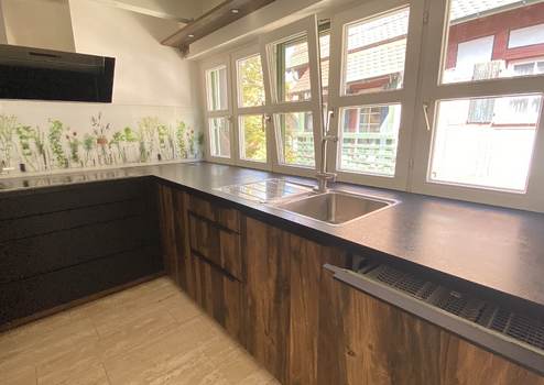 • Neuwertige Einbauküche mit einladendem Essplatz