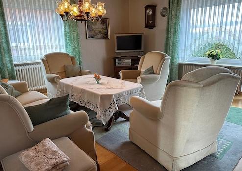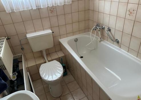 Einfamilienhaus mit Einliegerwohnung, Vollkeller und Garage mit vorgelagerter Terrasse und Markise, ca. 122 m² Wohnfläche zzgl. ca. 69 m² Nutzfläche im Keller, 5,5 Zimmer, 3 Bäder, 2 Küchen, gr. Terrasse am Wohnzimmer. Die Fenster sind teilweise mit Außenrollladen ausgestattet. Gartengerätehaus.