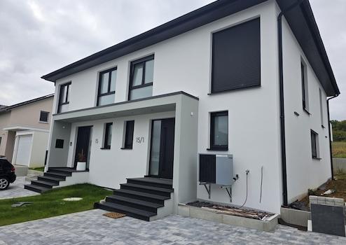 Diese moderne Doppelhaushälfte vereint zeitgemäße Architektur, energieeffiziente Bauweise und hochwertiges Design zu einem rundum stimmigen Wohnkonzept.