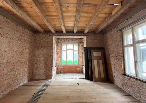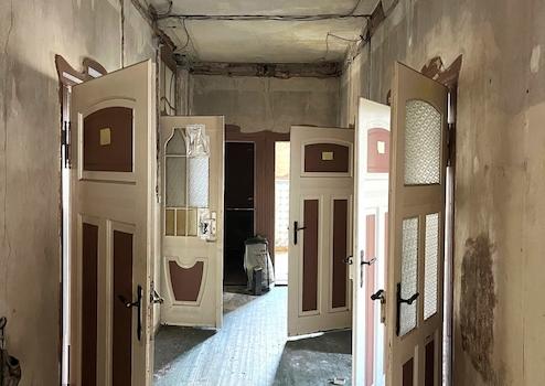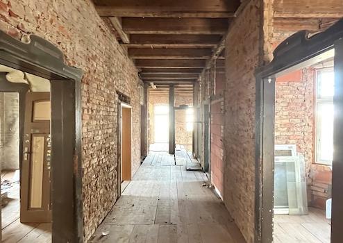 Bei diesem Immobilienensemble handelt es sich um 2 Liegenschaften. Der 4-geschossige, unsanierte, voll unterkellerte Altbau befindet sich in einem bis auf wenige Ausnahmen komplett sanierten Straßenzug. Die Immobilie wurde im Jahr 1900 als einseitig freistehendes Mehrfamilienhaus errichtet. Es besitzt eine Wohnfläche von ca. 800m² verteilt auf 4 Etagen (1 Souterrain-Einheit, 1 Einheit pro Geschoss auf 3 Vollgeschosse zzgl. 1 Einheit im Dachgeschoss). Das Objekt ist bereits vollständig entkernt. Historische Stilelemente wie u.a. die originalen Holztüren mit Beschlägen, Kastenfenster mit Bleiverglasung sowie Türzargen wurden dabei gesichert und im Objekt eingelagert. Außerdem wurde eine Strom-Steigleitung neu verlegt. Architektonische Besonderheiten bilden die außergewöhnlich schöne historische Fassade und die besondere Aufteilung der Wohnungen. Pro Etage ist nur eine sehr geräumige Wohnung angeordnet. Der Allgemeinzustand kann als solide bezeichnet werden. Das Objekt ist weitestgehend beräumt. Aufgrund der Eigenschaft als Einzeldenkmal besteht die Möglichkeit, alle anfallenden Instandhaltungs- und Modernisierungskosten über eine Sonderabschreibung geltend machen zu können.
