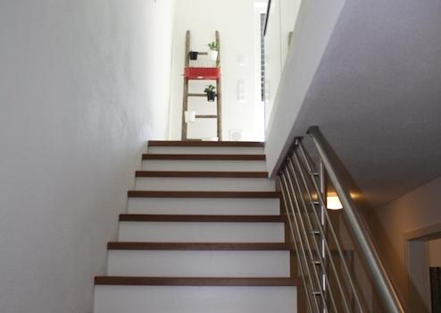 Die Treppe ins DG ist hochwertig mit Buchenholz auf den Trittstufen ausgebaut.