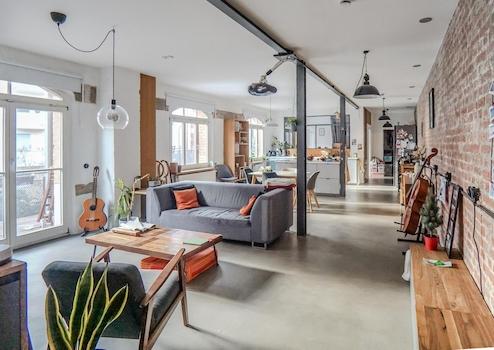 Dieses stilvolle, nach Süden ausgerichtete Loft überzeugt durch seine zentrale Lage und einen offenen, großzügigen Grundriss. Die beeindruckende Raumhöhe, kombiniert mit der charakteristischen Backsteinoptik und dem modernen Betonfußboden, schafft ein authentisches Loft-Ambiente mit urbanem Flair.