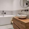 Das Badezimmer wurde 2023 hochwertig renoviert und ist mit einer begehbaren Regendusche, Badewanne, modernen großformatigen Fliesen (60 x 60 cm), einem Handtuchheizkörper sowie einem stilvollen Waschtisch und WC mit Vorwandinstallation ausgestattet.