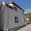 gedämmt, Rauputz gestrichen, Gaube mit Faserzementplatten, Sockel mit Klinkersteinen verblendet