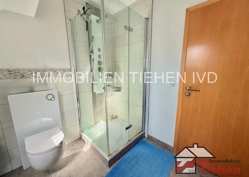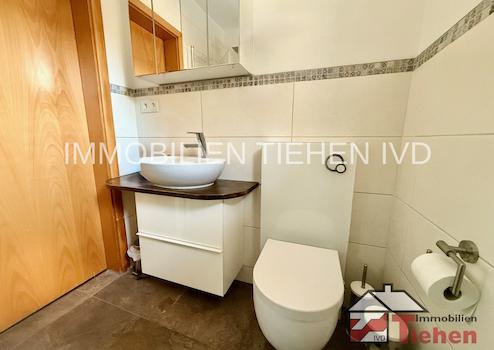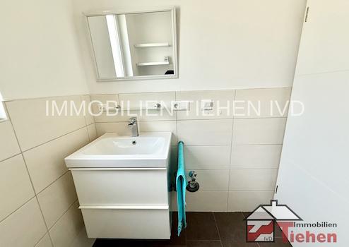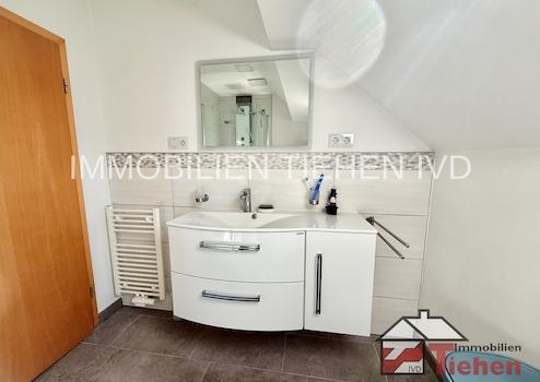 - je ein neuwertiges Badezimmer mit bodengleicher Dusche, WC u. Waschtisch