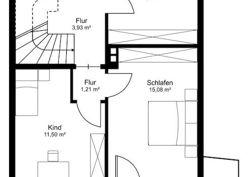 Im Obergeschoss befinden sich zwei Kinderzimmer sowie das Elternschlafzimmer mit Zugang zum Westbalkon.