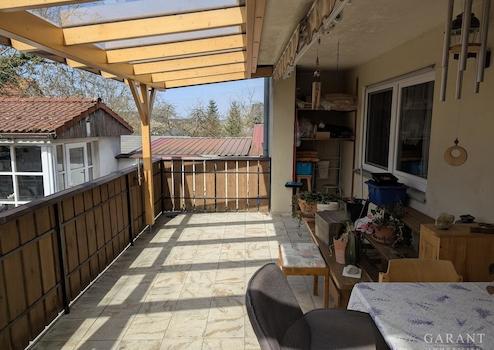 Diese praktisch geschnittene Wohnung mit ca. 98 qm Fläche liegt im Erdgeschoss eines Zweifamilienhauses in ruhiger Lage. Die Wohnräume umfassen Flur, separates WC, Abstellraum/Speis, Esszimmer, Küche, Wohnzimmer und zwei Schlafzimmer. Auf der ca. 12 qm großen überdachten Terrasse können Sie die Abendsonne genießen und den Blick im Garten schweifen lassen. Außerdem steht ihnen noch eine Menge Nutzfläche zur Verfügung. Im Dachgeschoss befindet sich ein ausgebautes und wärmegedämmtes Studio mit ca. 15 qm, der Kelleranteil beträgt ca. 25 qm. Außerdem gehört eine Garage zur Wohnung und nochmals zusätzlicher Stauraum im Dachboden der Garage.
