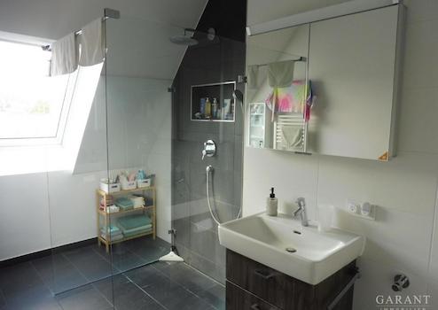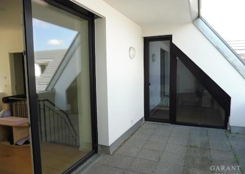 Die Maisonettewohnung wurde Ende 2015 bezogen (Erstbezug) und befindet sich in einem Neubau mit 22 Wohnungen. Zur Wohnung gehört ein Pkw-Stellplatz in der Tiefgarage mit kleinem Abstellraum und einer Wallbox, welche unmittelbar an den Stellplatz angrenzen. Ein Kellerraum ist ebenfalls vorhanden. Mit dem Aufzug gelangt man in das 3. Obergeschoss und über den Laubengang zur Wohnung. Die sehr großzügig gestaltete Wohnung umfasst im unteren Bereich den Wohnungseingang mit offener Wohnküche. Daran schließt sich der Wohnzimmerbereich mit Zugang zur Loggia an, welche sich nach Süden öffnet und den Blick auf die Karlshöhe ermöglicht. Über den Flur erreicht man dann das Arbeitszimmer, das Bad mit Badewanne, das Schlafzimmer und den Hauswirtschaftsraum. Zwischen Wohnküche und Wohnzimmer gelegen, befindet sich die Treppe zum Obergeschoss, welche auf der Galerie endet. Von hier kann man direkt auf die Dachterrasse treten und die morgendliche Sonne bei Gymnastik oder/und Frühstück genießen. Eine Ankleide und das Bad mit Dusche schließen sich unmittelbar an die Galerie an. Eine vom Eigentümer eingebaute raumhohe Spiegelschiebetür trennt die Ankleide vom Schlafzimmer. Von hier ist ein direkter Zugang zur Dachterrasse möglich.