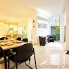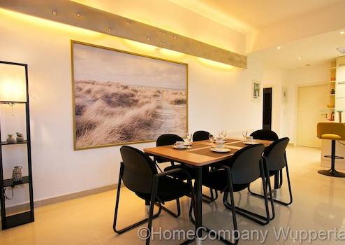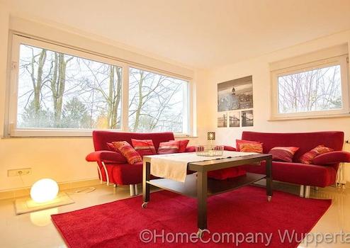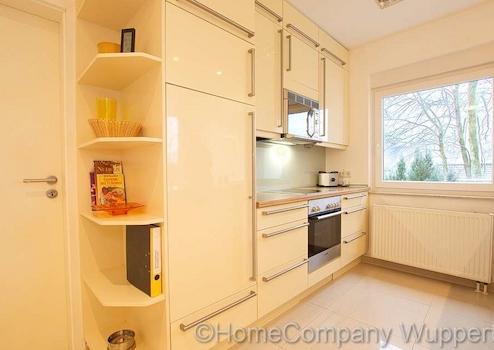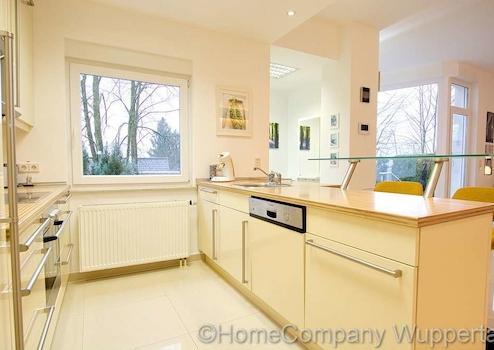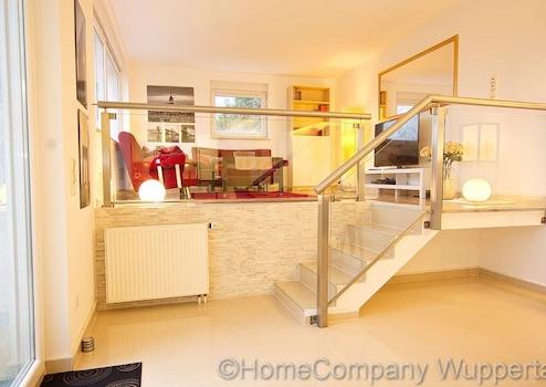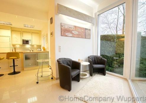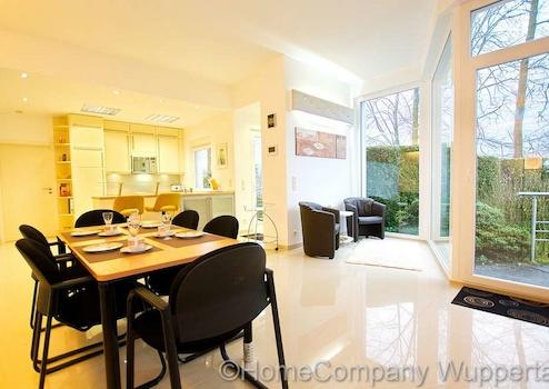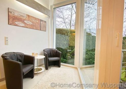 Die großzügige Komfortwohnung mit DSL- Anschluß und separatem Eingang vom Garten aus, befindet sich in einem exklusiven Anwesen in bevorzugter Wohnlage in Wuppertal-Katernberg. Der lichtdurchflutete, offene Wohnraum ist mit einer gemütlichen Sitzecke mit Designer-Sofas, passendem Tisch und SMART- TV auf einer erhöhten Wohnebene ausgestattet. Die untere Wohnebene lädt mit einem modernen Esstisch mit 6 Essplätzen zu ausgedehnten Essen mit Freunden oder Geschäftspartnern ein. Von dort aus gelangt man auch direkt in den Garten mit schöner Terrasse. Direkt anschließend an den großzügigen Essbereich befindet sich die exklusiv ausgestattete, offene Küche mit modernen Elektorgeräten (Spülmaschine, Herd mit Ceranfeld, Mikrowelle, Kaffeemaschine). Alle erforderlichen Kochuntensilien werden zur Verfügung gestellt. Das helle Schlafzimmer verfügt über ein bequemes Doppelbett(180 x 200), einen Kleiderschrank und elektrische Rolladen zur Verdunklung. Das Highlight dieser exclusiven Komfortwohnung ist das Wellnessbad. Es verfügt über eine Dampfdusche mit Sternenhimmel und verschiedenen Duscheinstellungen. Die Badewanne mit Wirlpooleinrichtung bietet Entspannung pur nach einem langen Tag. In einem kleinen separaten Abstellraum befindet sich die Waschmaschine und ein Wäschetrockner. Der Mietpreis für eine Person beträgt € 1400,00 für eine Person inklusive einer Vorrauszahlung auf die Energie- und Nebenkostenkosten in Höhe von € 150,00 und der Nutzung des Internetzugangs. Die Endreinigung zahlt der Mieter. Sie erfolgt nach Aufwand und wird mit derzeit € 35,00 pro Stunde abgerechnet.
