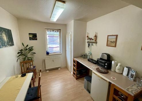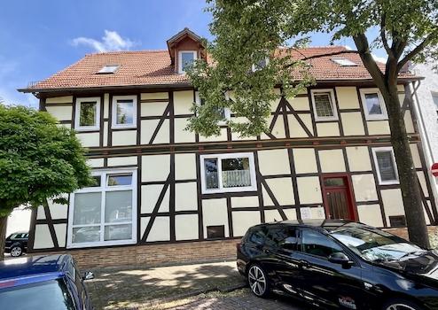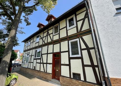 Das zum Verkauf stehende Fachwerkhaus wurde vermutlich um das Jahr 1800 erbaut und in den Jahren 1989 und 1990 umfangreich saniert. Es sind insgesamt fünf Wohnungen und eine Gewerbefläche vorhanden. Die Wohnungen teilen sich wie folgt auf: 1x 1 ZKB mit ca. 40 m² Wohnfläche, 2x 2 ZKB mit je ca. 50 m² Wohnfläche, 1x 2 ZKB Maisonette mit ca. 45 m² Wohnfläche und 1x 3 ZKB mit ca. 70 m² Wohnfläche. Die Gewerbeeinheit hat eine Fläche von ca. 52 m² und besteht aus einem Laden/Büro sowie Küche und WC. Das Haus ist voll unterkellert. Im Kellergeschoss sind Abstellräume und der Heizungsraum untergebracht. Alle Wohnungen sind aktuell vermietet, die Mieteinnahmen belaufen sich auf 21.840 €/ Jahr. Die Gewerbefläche ist aktuell nicht vermietet und kann ggf. nach dem Kauf selbst genutzt oder noch zu einer weiteren Wohneinheit umgebaut werden.