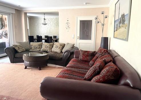Großzügiges Wohnzimmer mit Zugang zur Terrasse, separate Küche, Wohnbereiche auch für ältere Bewohner ebenerdig nutzbar.