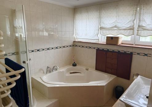 Drei gemütliche Kinder-/Schlafzimmer, ein großes Elternschlafzimmer mit direktem Zugang zum Balkon, sowie ein helles Badezimmer mit Dusche, Badewanne und Fenster.