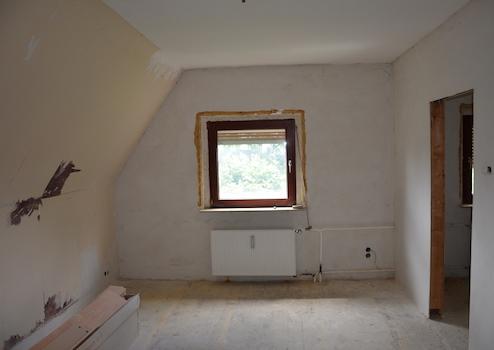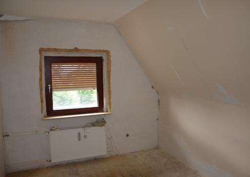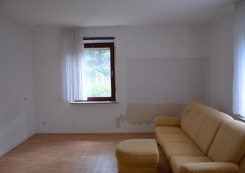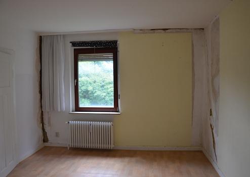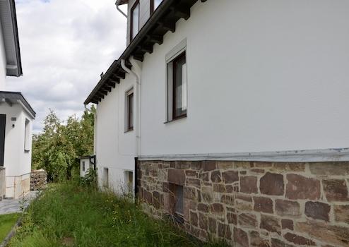 Ein ca. 1,5 cm breiter Setzungsriss in der westlichen Außenwand (südwestliche Hausecke) zieht sich vom Keller bis ins Dachgeschoss. Die Ursache – Trockenheit im Erdreich – wurde bereits behoben, der Riss muss lediglich noch optisch instandgesetzt werden.