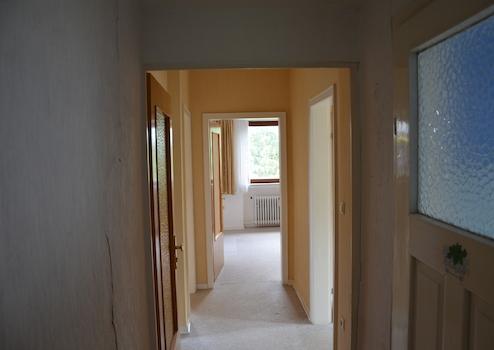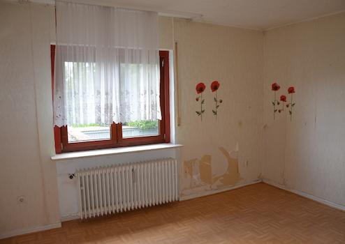 Das massiv gebaute Wohnhaus befindet sich größtenteils im Zustand der 1970er Jahre und bietet eine solide Grundlage für umfassende Renovierungs- und Modernisierungsmaßnahmen. Die Fenster im Anbau wurden 1998 durch Kunststofffenster mit Isolierverglasung ersetzt, der Rest entspricht weitgehend dem älteren Standard. Die Öl-Zentralheizung stammt ebenfalls aus den 70er Jahren und muss laut aktueller Gesetzgebung erneuert werden.
