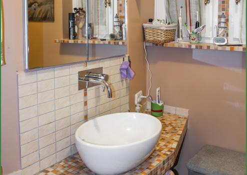 Ein zusätzlicher Waschraum mit WC ist ebenfalls vorhanden und sogar dieser Bereich präsentiert sich modern und ansprechend.