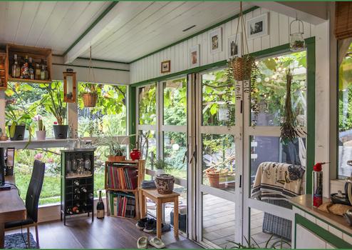 Ein Wintergarten und eine überdachte Terrasse erweitern den Wohnbereich in den Außenraum.