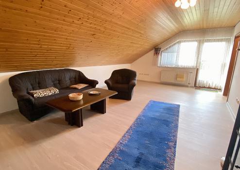Die Einliegerwohnung im Dachgeschoss verfügt über eine eigene Küche, ein Wohnzimmer mit Balkon sowie einen tollen Ausblick – perfekt für Gäste, erwachsene Kinder oder zur Vermietung.