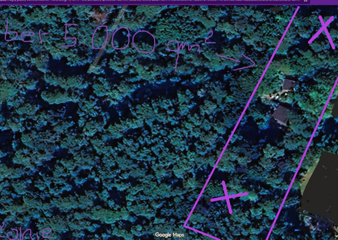 Ruhige Waldlage, Bebauungen a l l e s Einzelhäuser, Doppelhäuser und Villen. Eine Seite vom Grundstück - Grüne Schutzzone für Mensch und Tier - dort darf nicht gebaut werden.