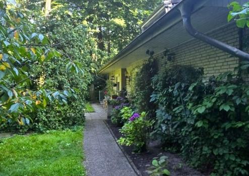 Der vordere u. mittlere Grundstücksbereich, ist mit diversen Ziersträuchern, Blumenhochbeten, kleinen Hecken ect. versehen.