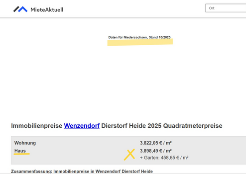 Sie können Ihrer Bank den l i n k von der Annonce bei ohne-makler.net schicken, oder ich sende Ihnen ein Kurzexpose'. Selbst Sprengnetter bewertet die Liegenschaften höher.