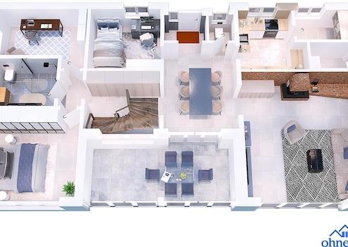Die 3 D Grundrisse vom Haupthaus sind für Sie und die Bank, zur besseren Veranschaulichung / Visualisierung des Objektes, die Daten wurden bestmöglich umgesetzt Originalgetreu sind natürlich unsere Fotos, aber es kommt schon sehr, sehr gut hin.