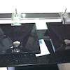 Hochglanzküche in bordeaux und schwarz, Arbeitsplatten Sonderanfertigung aus dickeren Granitplatten.