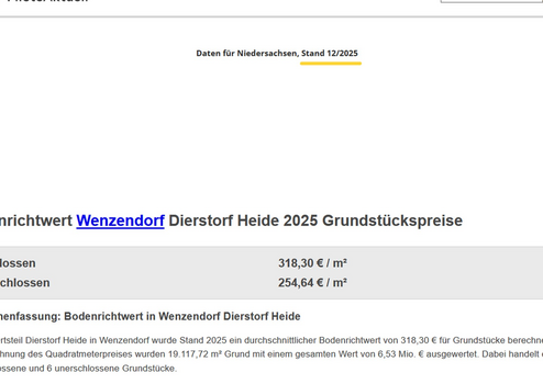 Die Immobilien liegen dicht an d e r A 1, sodass eine zügige Anbindung nach Hamburg ( 25 Min. bis Elbbrücken) und Bremen ( ca. 45 Min.), gegeben ist. Die Liegenschaften befinden sich in 21279 Wenzendorf - OT - Dierstorf Heide, Wennerstorfer Kirchweg X. Die Hausnr. erhalten Sie zur Besichtigung.