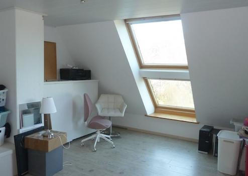 Dachgeschoss: 3 Schlafzimmer (davon 2 mit über Treppe erreichbaren Schlafbereich im ausgebauten Spitzboden), Durchgangs-/Ankleidezimmer mit großen Dachfenstern, Bad/WC mit Dusche.