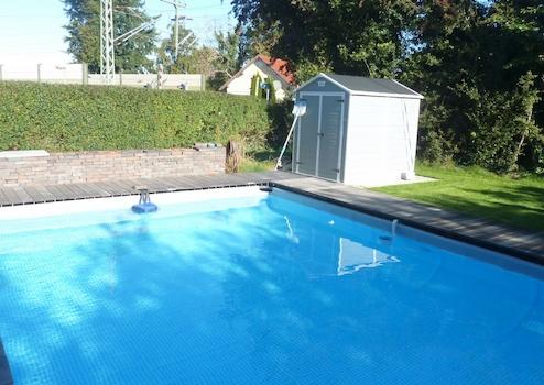 Nebengebäude: Großer Hobbyraum/Werkstatt (ca. 45m²), Gerätehaus für Swimmingpool, Gewächshäuschen.