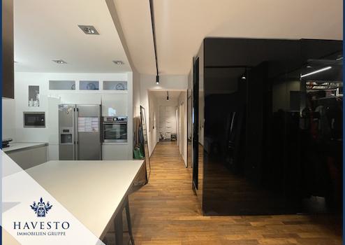 Auf Wunsch besteht jedoch die Möglichkeit, die vorhandenen hochwertigen Einbauten zu übernehmen. Dazu zählt die moderne, maßgefertigte Einbauküche mit großzügiger Arbeitsfläche, hochwertigen Elektrogeräten und einer stilvollen, hellen Gestaltung. Sie ist optimal in den Raum integriert und bietet dank durchdachter Planung viel Stauraum und Funktionalität.