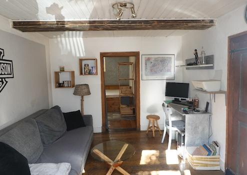 Über einige Treppenstufen gelangen Sie in den kleinen Vorgarten und in die charmante Einliegerwohnung mit überdachtem Eingangsbereich. Hier erwarten Sie ein gemütliches Wohnzimmer mit Übergang in das Schlafzimmer, eine Wohnküche sowie ein Tageslichtbad mit Dusche. Über die Diele oder das Badezimmer ist eine Verbindung zur Hauptwohnung möglich.