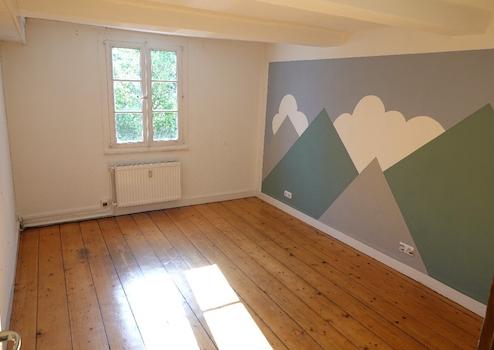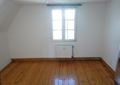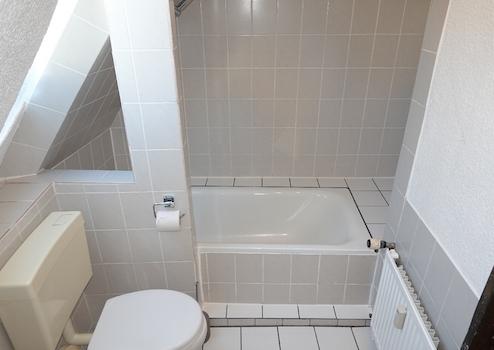 Auch das Dachgeschoss überzeugt durch aufgearbeitete alte Holztüren mit historischem Charme. Zwei Schlafzimmer (ca. 12 m² mit Einbauschrank sowie ca. 18 m²) und ein Tageslichtbad mit Badewanne runden diese Wohnebene ab. Zusätzlich bietet der Dachboden weiteren Stauraum.
