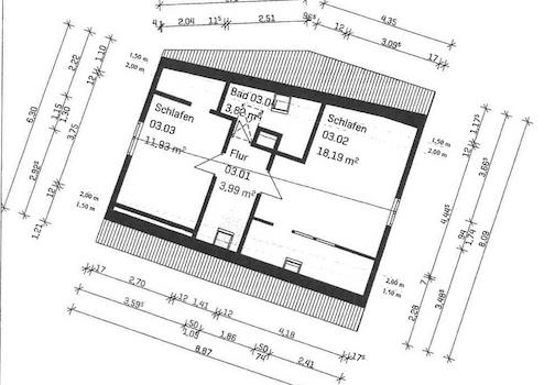 Dachform: Satteldach, Dachboden über Ausziehleiter aus dem DG erreichbar