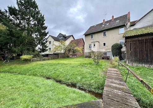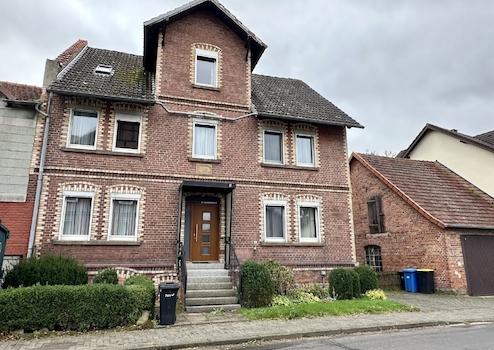 Dieses beeindruckende Einfamilienhaus in Massivbauweise wurde im Jahr 1901 aus soliden Backsteinen errichtet und verbindet historischen Charme mit großzügigem Raumangebot. Mit einer Wohnfläche von ca. 227 m², verteilt auf drei Etagen, bietet das Anwesen vielfältige Nutzungsmöglichkeiten für Familien und Menschen mit Platzbedarf. Im Erdgeschoss befinden sich eine gemütliche Küche mit angrenzender Speisekammer, ein Badezimmer mit Badewanne und Dusche, ein großzügiges Wohnzimmer, ein Büro sowie ein Gästezimmer. Diese Etage überzeugt durch ihre funktionale Raumaufteilung und den authentischen Charakter des Altbaus. Das Obergeschoss beherbergt vier weitere Zimmer, die sich ideal als Schlaf- und Kinderzimmer eignen. Zudem steht hier ein weiteres Badezimmer mit Badewanne zur Verfügung. Das Dachgeschoss ist teilweise ausgebaut und bietet zwei zusätzliche Zimmer. Insgesamt stehen hier vier Räume zur Verfügung, wovon einer als weiteres Badezimmer ausgebaut werden kann. Das Haus ist voll unterkellert und verfügt über einen beeindruckenden Gewölbekeller, der nicht nur Stauraum bietet, sondern auch einen Zugang zur angrenzenden Scheune ermöglicht. Die Scheune bietet umfangreiche Nutzflächen und eröffnet vielfältige Nutzungsmöglichkeiten – sei es für Hobbys, Werkstatt oder als Lagerfläche. Ergänzt wird das Anwesen durch eine großzügige Garage, die weiteren Platz für Fahrzeuge oder Gerätschaften bietet. Das idyllische Grundstück mit einer Größe von 2.929 m² ist ein echtes Highlight. Es umfasst zwei Flurstücke, die durch eine Brücke miteinander verbunden sind, über die ein kleiner Bach verläuft – ein besonders reizvolles Merkmal, das dem Anwesen einen unverwechselbaren Charakter verleiht. Hinter dem Haus befindet sich eine Terrasse sowie ein überdachter Freisitz, welche zum verweilen einladen. Sind Sie neugierig geworden? Dann rufen Sie uns doch einfach für nähere Informationen oder die Vereinbarung eines Besichtigungstermins an! Bitte sehen Sie sich auch unseren virtuellen 360°-Rundgang zu dieser Immobilie an! So bekommen Sie bereits vorab einen realistischen Eindruck von den Gegebenheiten vor Ort.